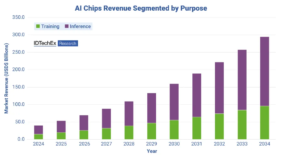 AI chips revenue segmented by purpose. Source: IDTechEx