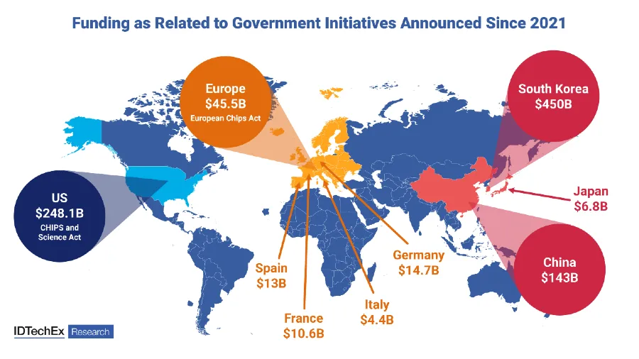 Funding as related to government initiatives announced since 2021. Source: IDTechEx