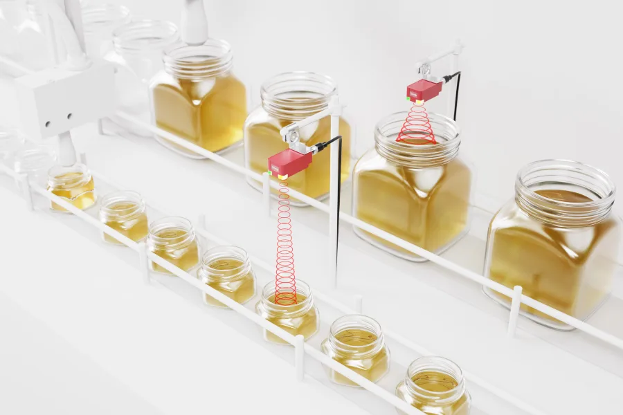 A narrow sound cone, for example, is suitable for detecting a fill level through small container openings. In its wide setting, the sound cone in turn captures larger areas – ideal in the case of bulk material or diffusely reflective objects with complex surface or structure. Practical: An interruption filter detects brief changes in measurement within a certain interval caused by interfering objects (e.g. an agitator). The sensor suppresses these interfering signals via the IO-Link interface, thereby ensuring a seamless production process.