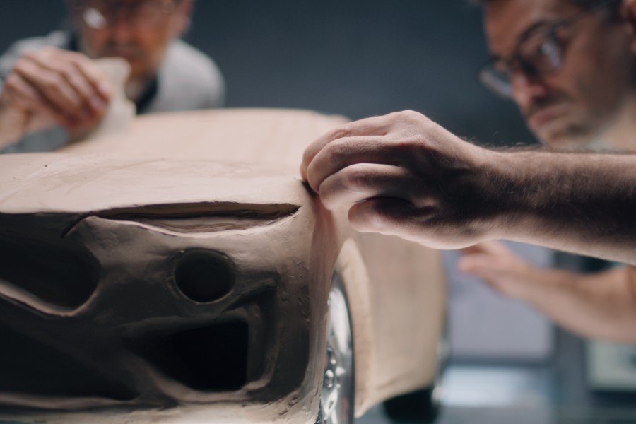 For wind tunnel tests, models are often made from materials like Ureol, rigid foam, or a type of clay because these materials are easy to shape and modify. The creation of such models, whether of the entire car or just individual components, is done manually or with the aid of specialized milling machines, like portal milling machines or mobile mills, which were specifically developed for model making in the automotive sector.