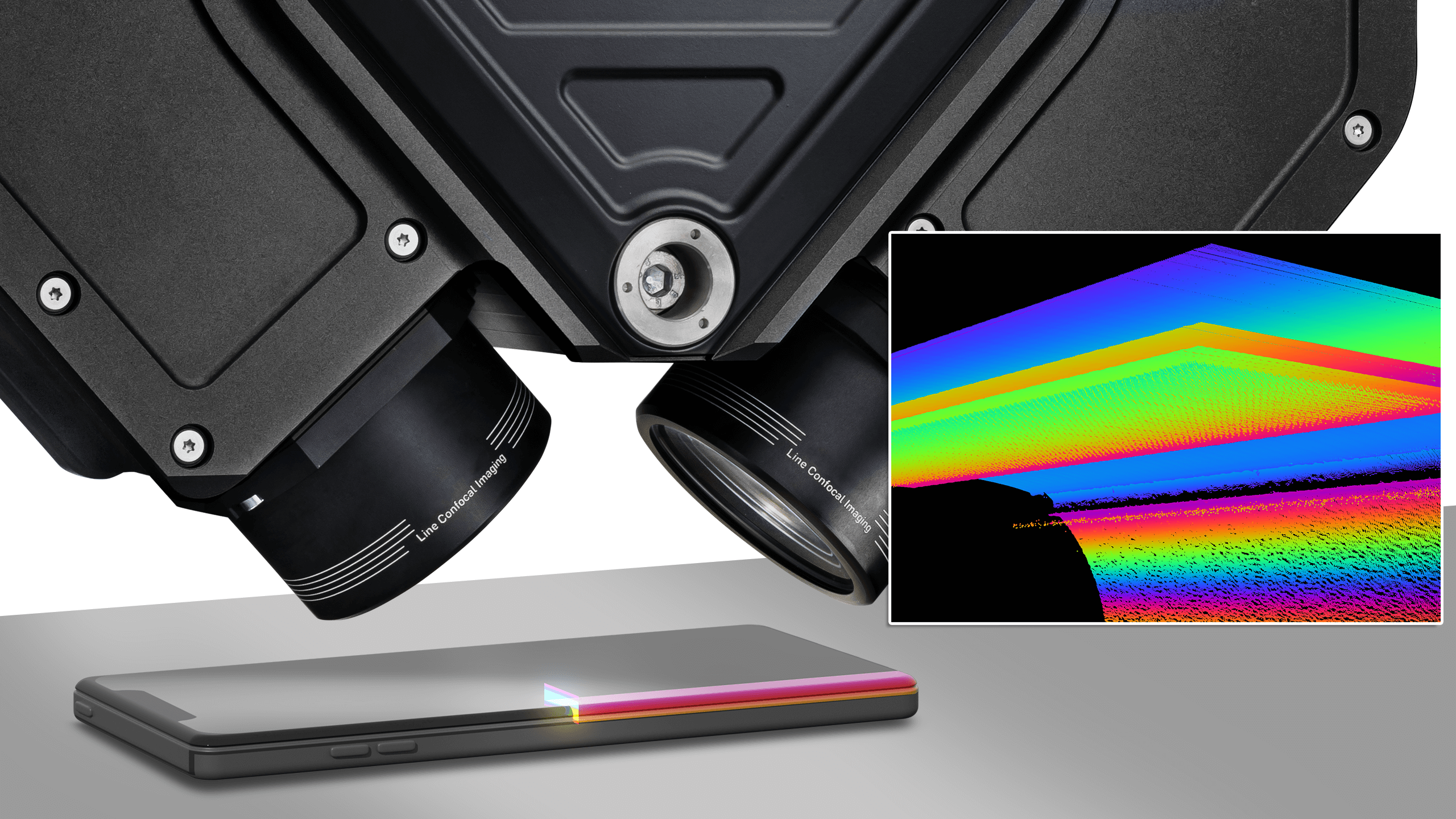 The key advantage of line confocal sensors is their ability to generate 3D topography (3D surface geometry), 3D tomography (multi-layer 3D geometry and 2D intensity), and 2D intensity data simultaneously over a wide coverage line scan at fast scan rates (over 16 kHz with PC acceleration). This makes it possible to measure the thickness of individual layers or detect defects on secondary layers.